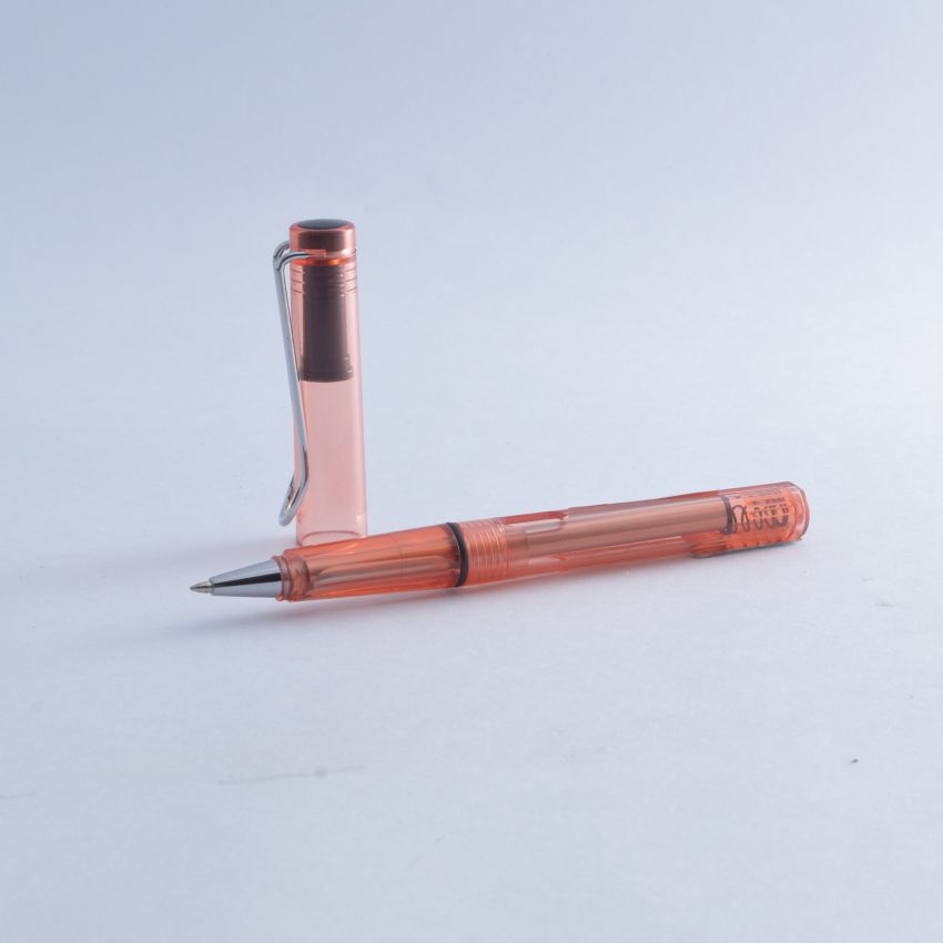 BOLIGRAFO DE TAPA IMITACION LAMY, CUERPO TRANSLUCIDO, TINTA HUEDA COLOR NEGRO.