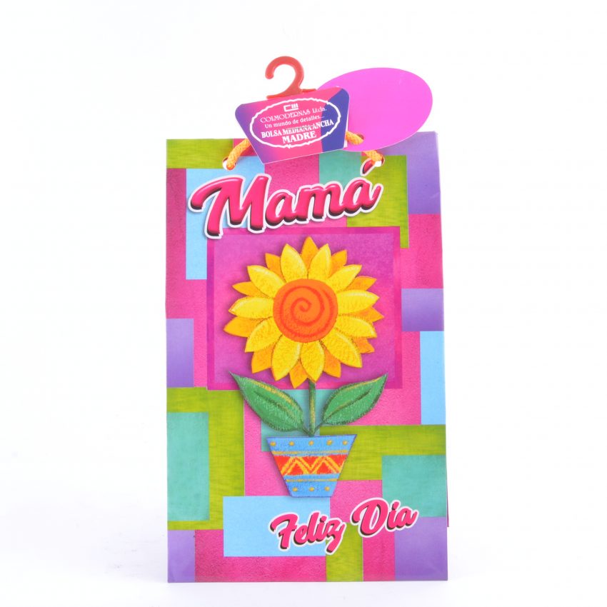 BOLSA MEDIANA, ANCHA, CON TARJETA, MOTIVO DIA DE LAS MADRES, MARCA COLMODERNAS.