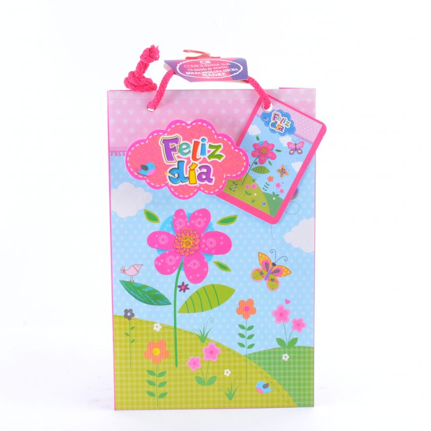 BOLSA MEDIANA, ANCHA, CON TARJETA, MOTIVO DIA DE LAS MADRES, MARCA COLMODERNAS.