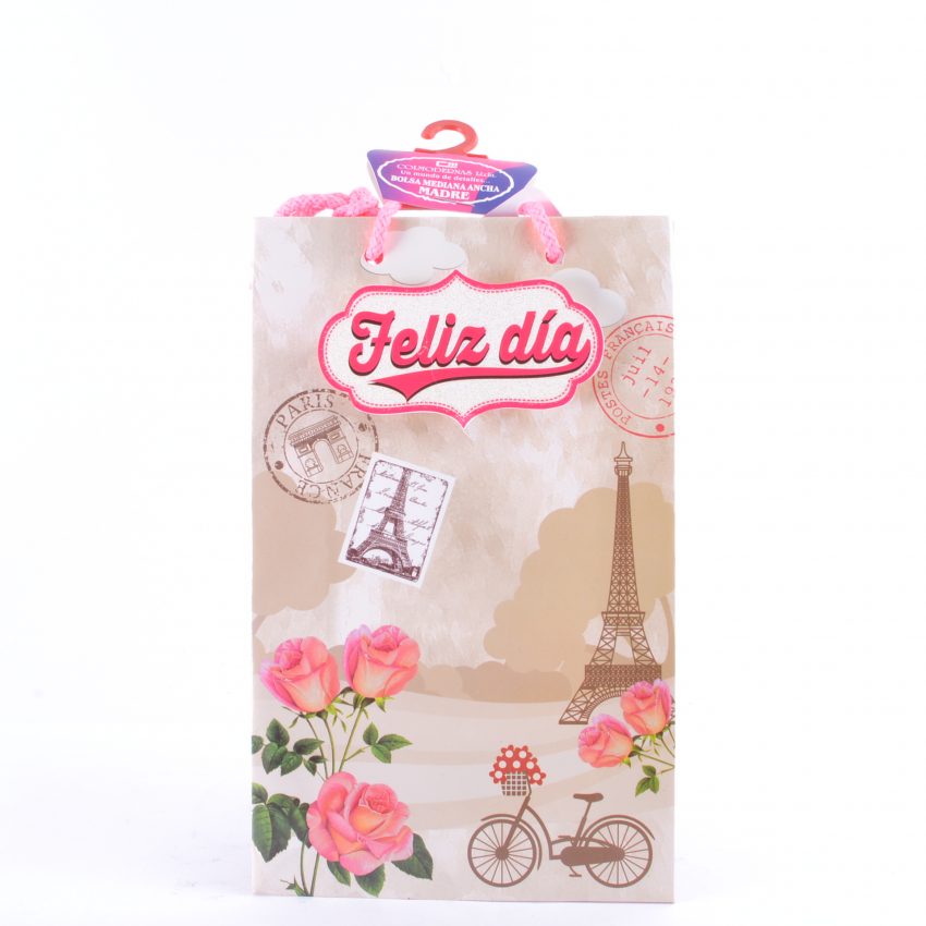 BOLSA MEDIANA, ANCHA, CON TARJETA, MOTIVO DIA DE LAS MADRES, MARCA COLMODERNAS.